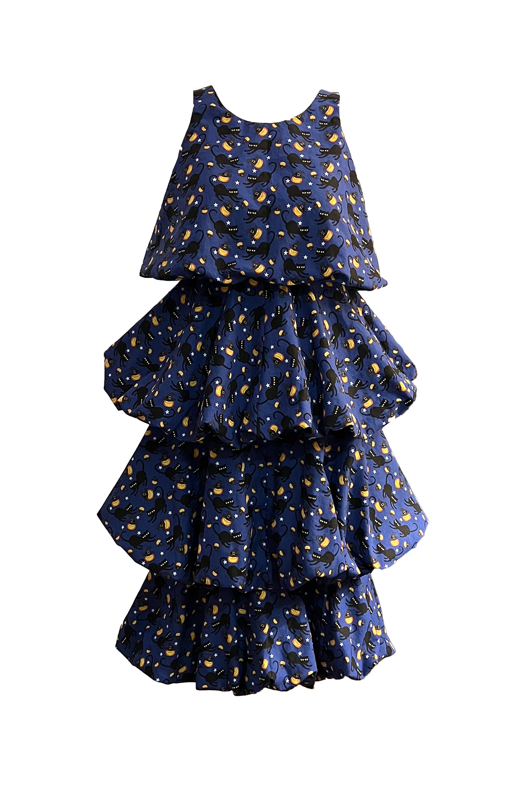 Black Cat Tiered Gathered Dress