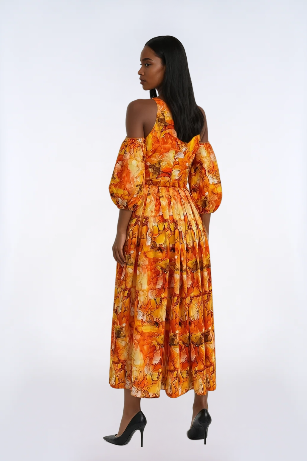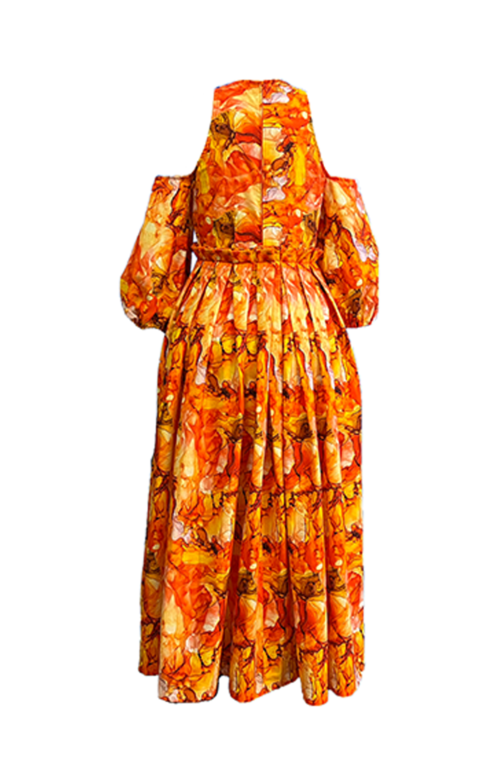 Empire Waist Orange Swirl Couture Box Pleat Dress