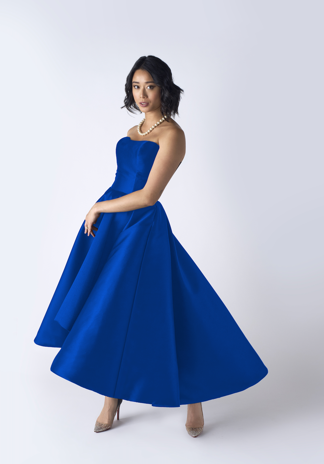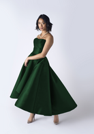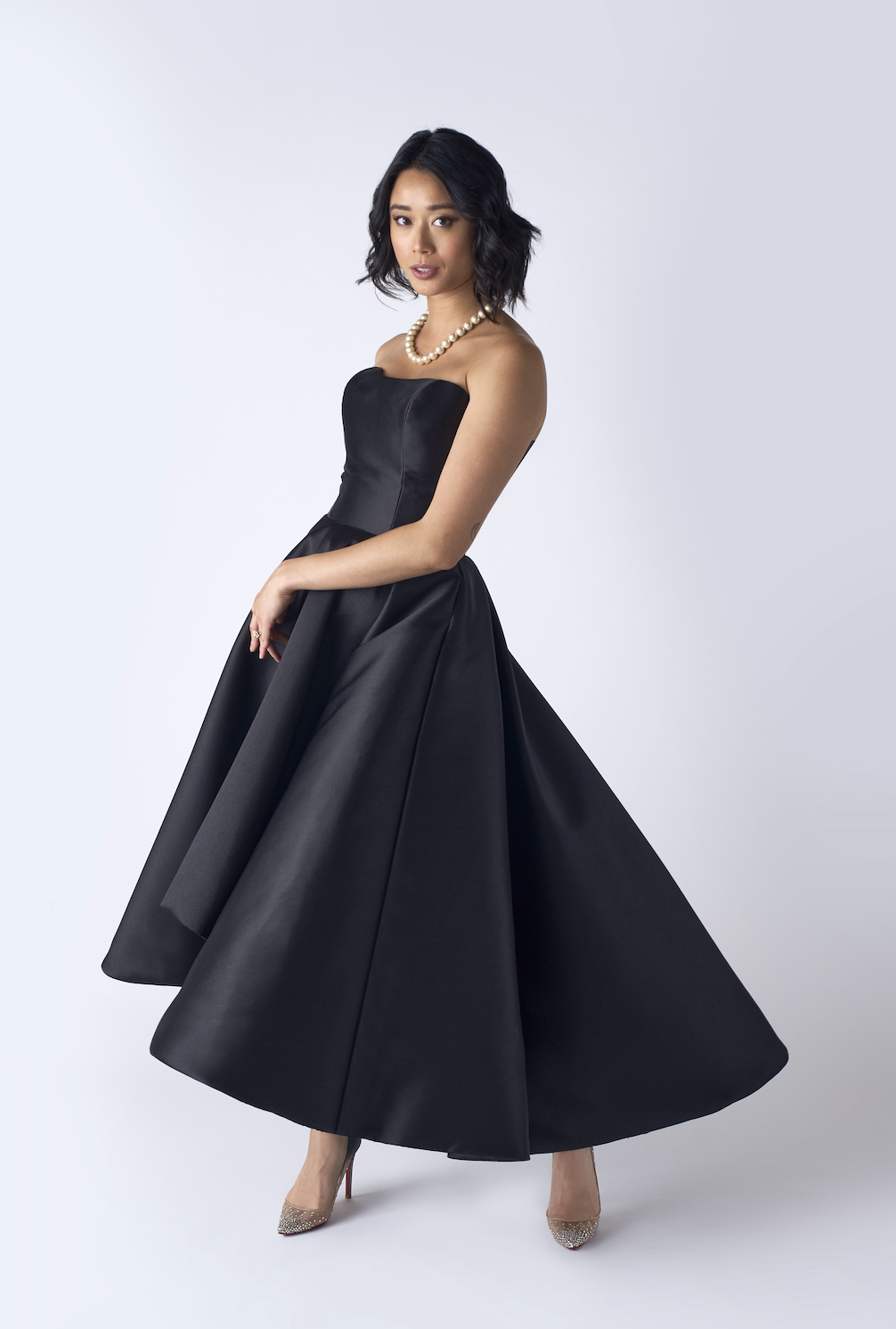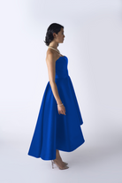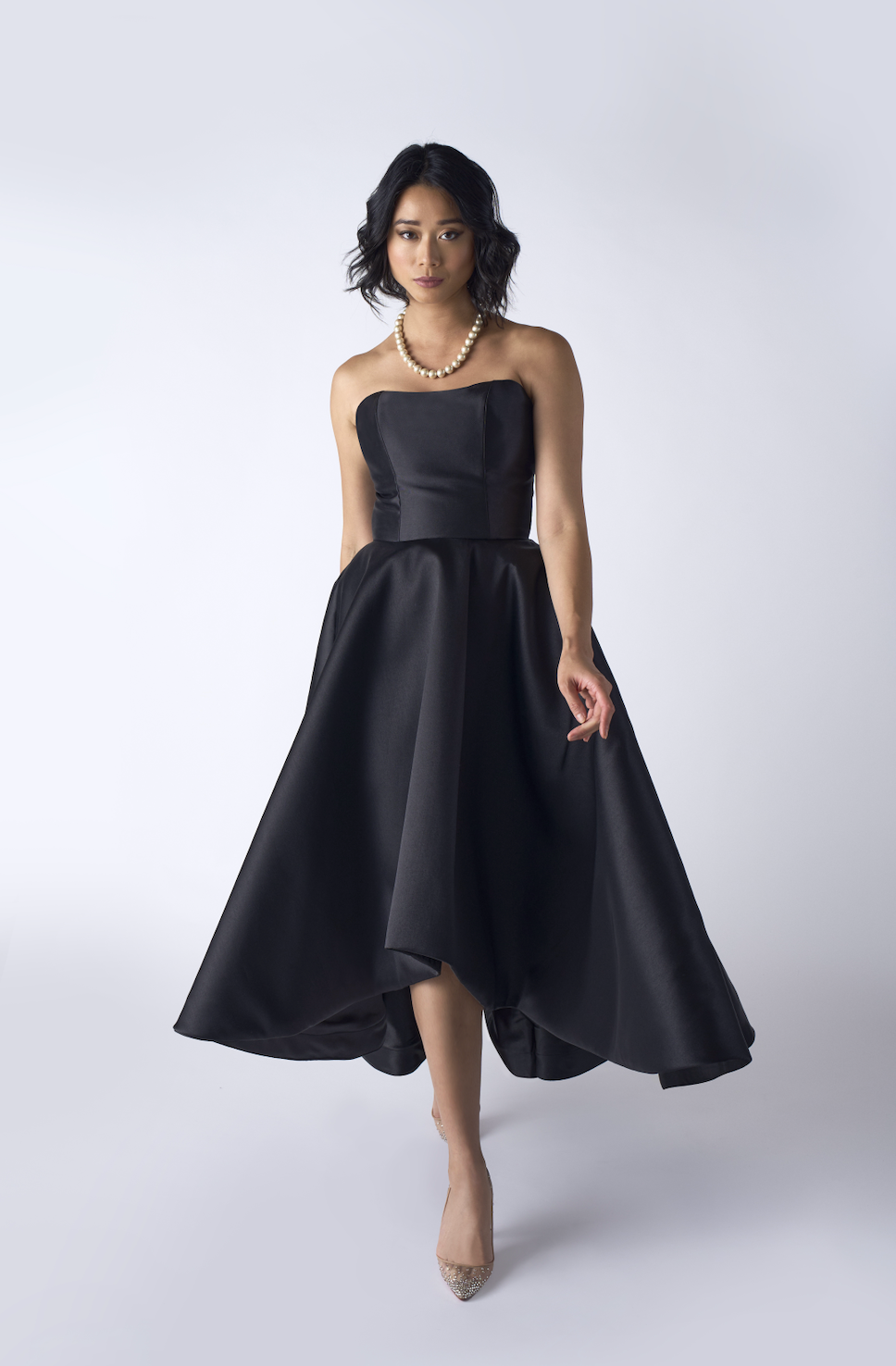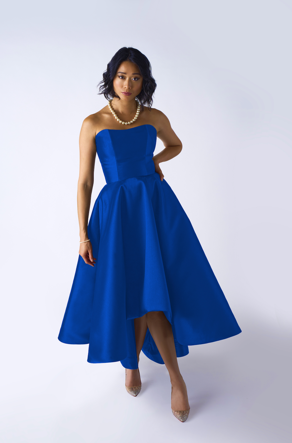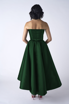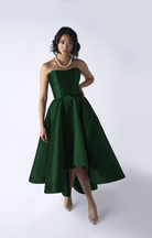 In the Reverie, clean lines and a dramatic, sweeping high-low skirt create a silhouette that feels both refined and romantic. Crafted from structured mikado, the sculpted strapless bodice defines the waist while the full skirt moves with effortless grace below. A built-in corset shapes and supports, while the bridal satin lining feels soft and smooth against the skin. Elegant without trying too hard, the Reverie is designed for black-tie evenings, weddings, and any occasion where you want to look unforgettable and timelessly romantic.