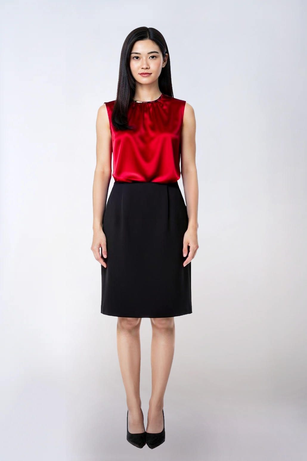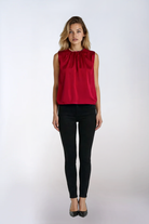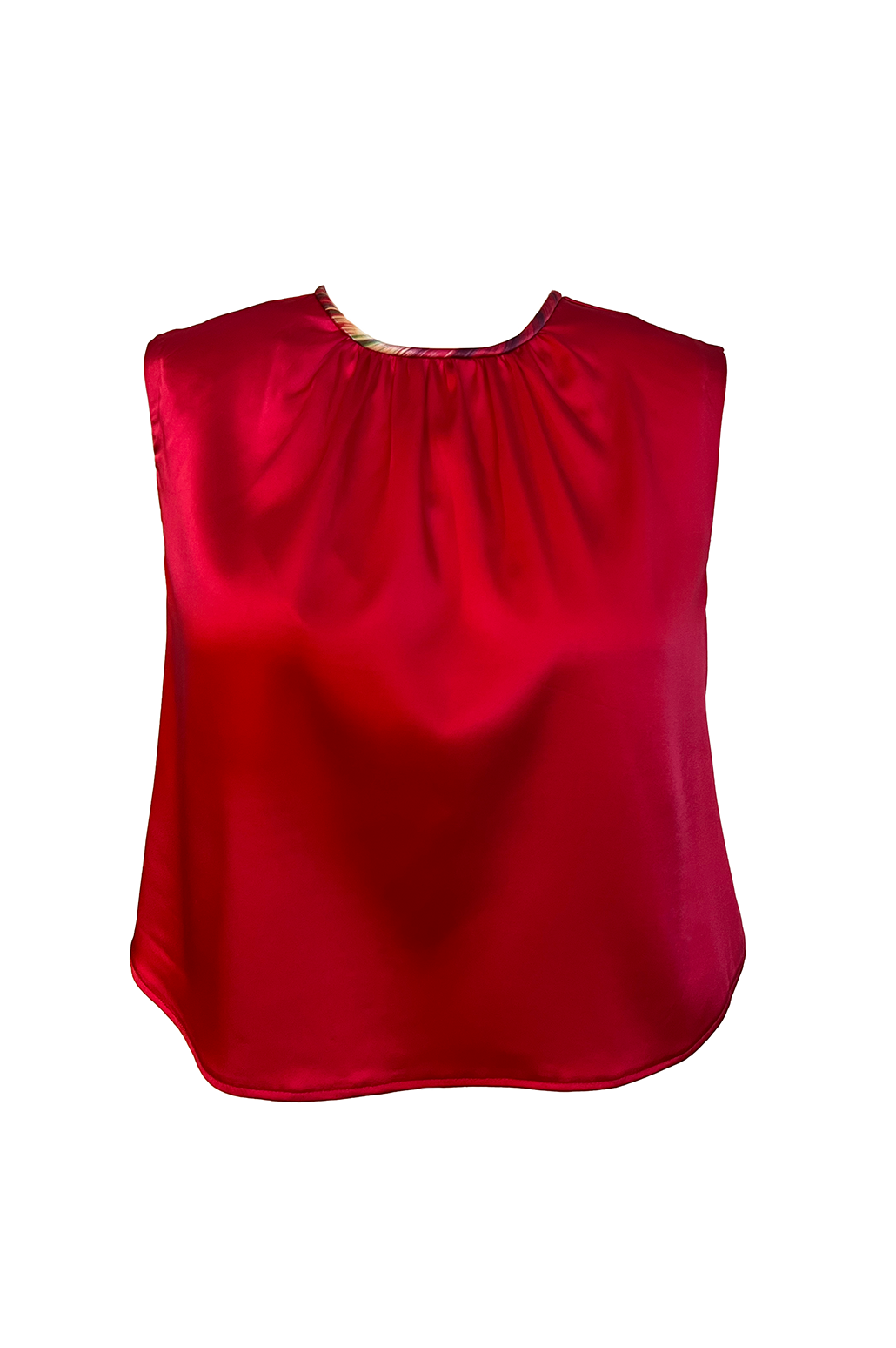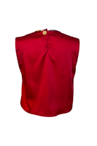 This cherry red silk blouse blends refined simplicity with couture craftsmanship. Soft gathers at the crew neckline allow the silk to fall beautifully along the bodice, creating a draped, feminine silhouette. The armholes are finished with cotton bias tape for gentle structure, while the neckline is framed in custom silk bias for a subtle, elegant contrast. Designed to slip on with ease, the back closes with a single oversized button that adds charm and polish.